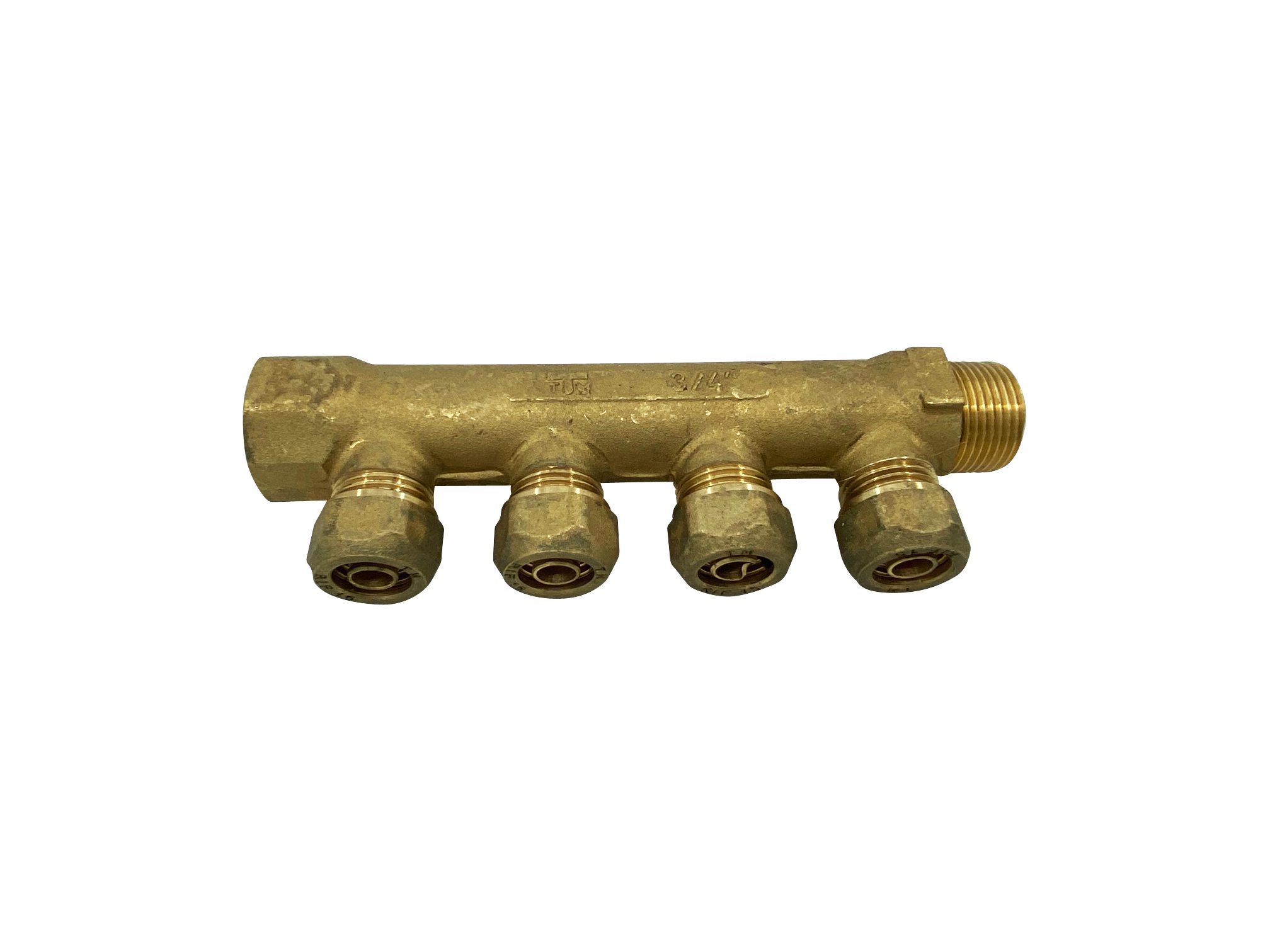 Fordelergren 3/4″ til 15 mm. 4 afgreninger med omløber.