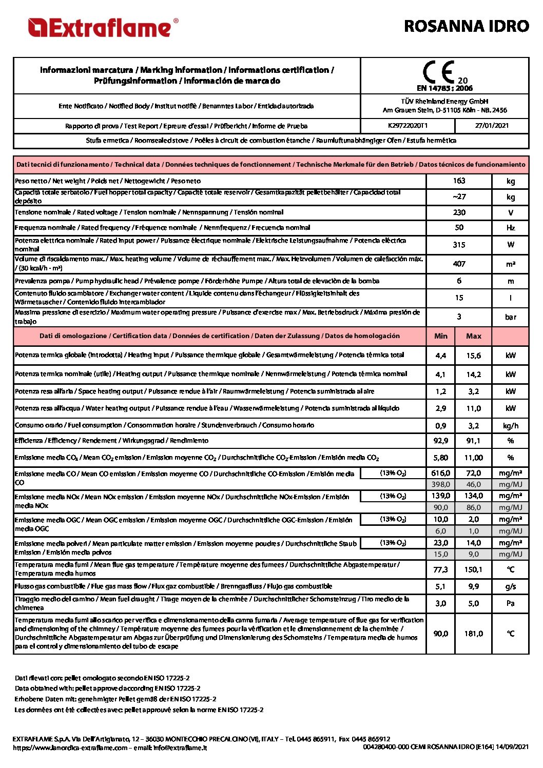 Extraflame Rosanna idro 14,2 kw fra EF Handel. Vi importer og har solgt pille ovne fra flere af de store producenter fra Italien.