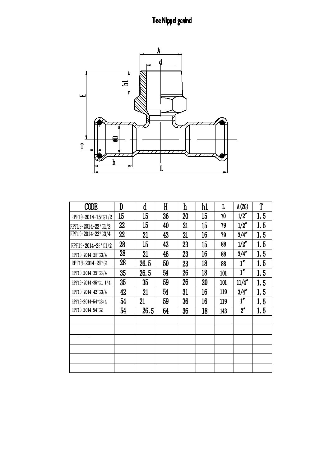 28mm Tee med 1”gevind afgren Nippel 28-1”-28 antal