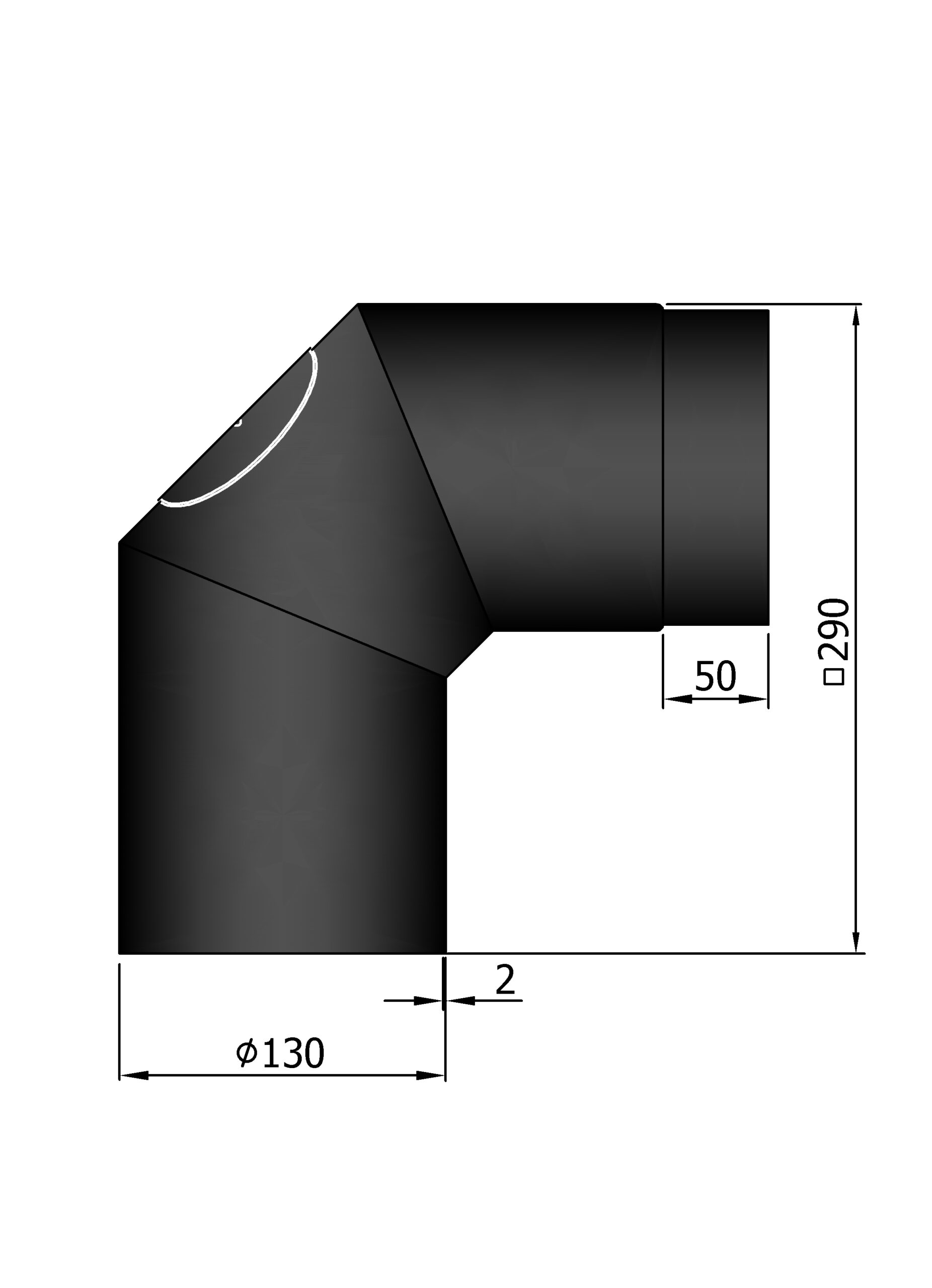 Bøjning Knæ rør 90 grader (2×45) ø130mm bøjning med rense klap i Sort.