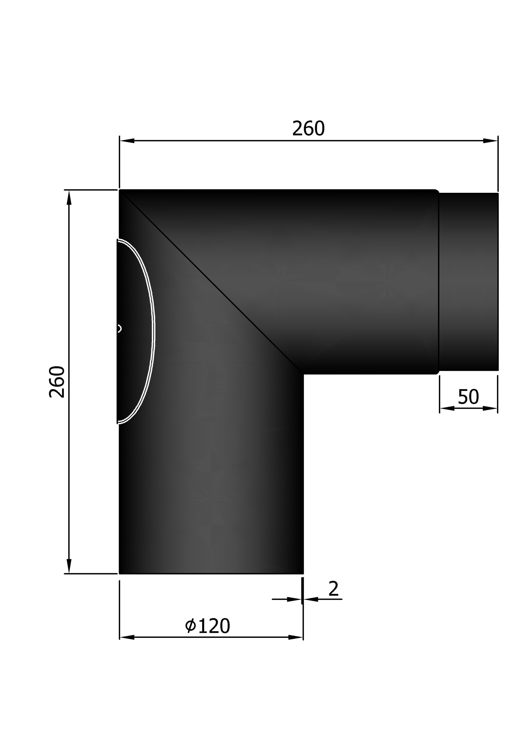 Knærør 90gr. ø120mm skarp knæ med renseklap