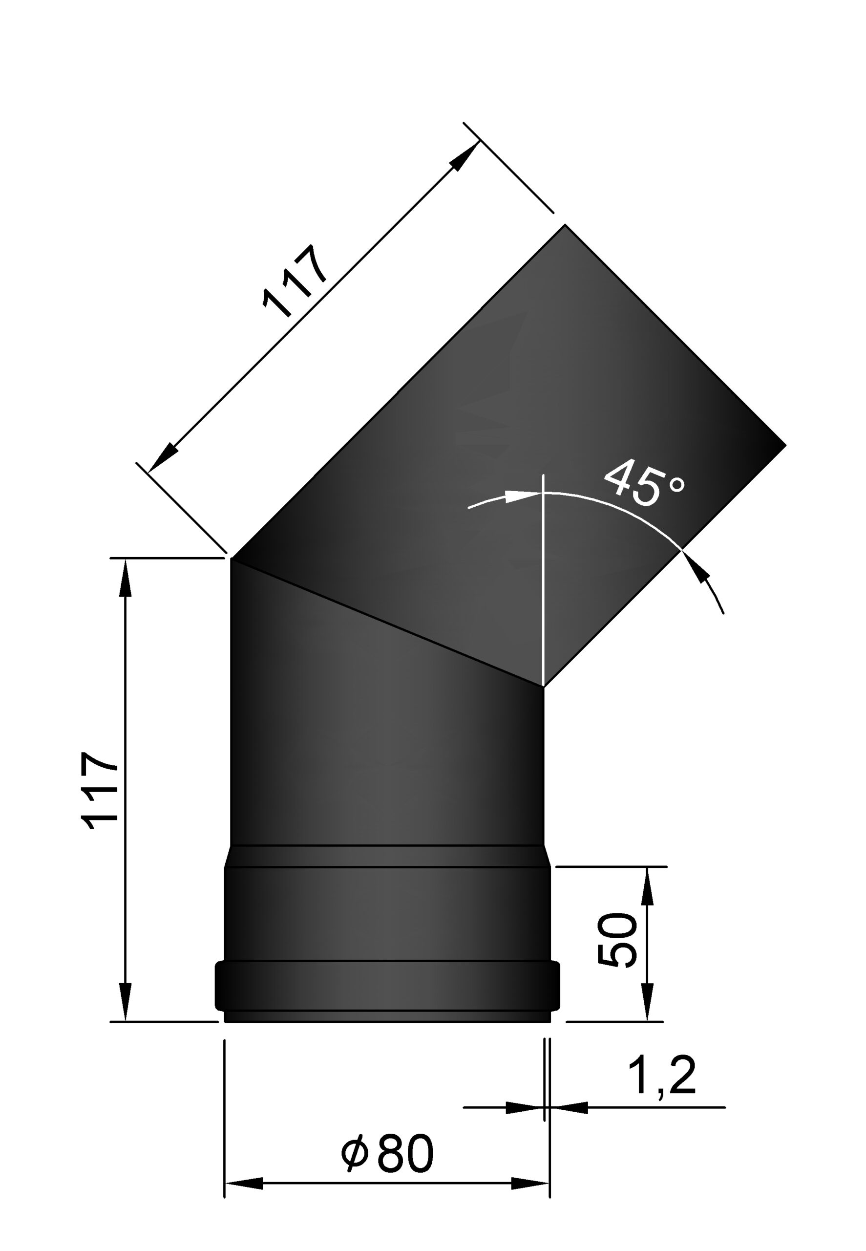 Bøjning 45g ø.80mm med pakning.