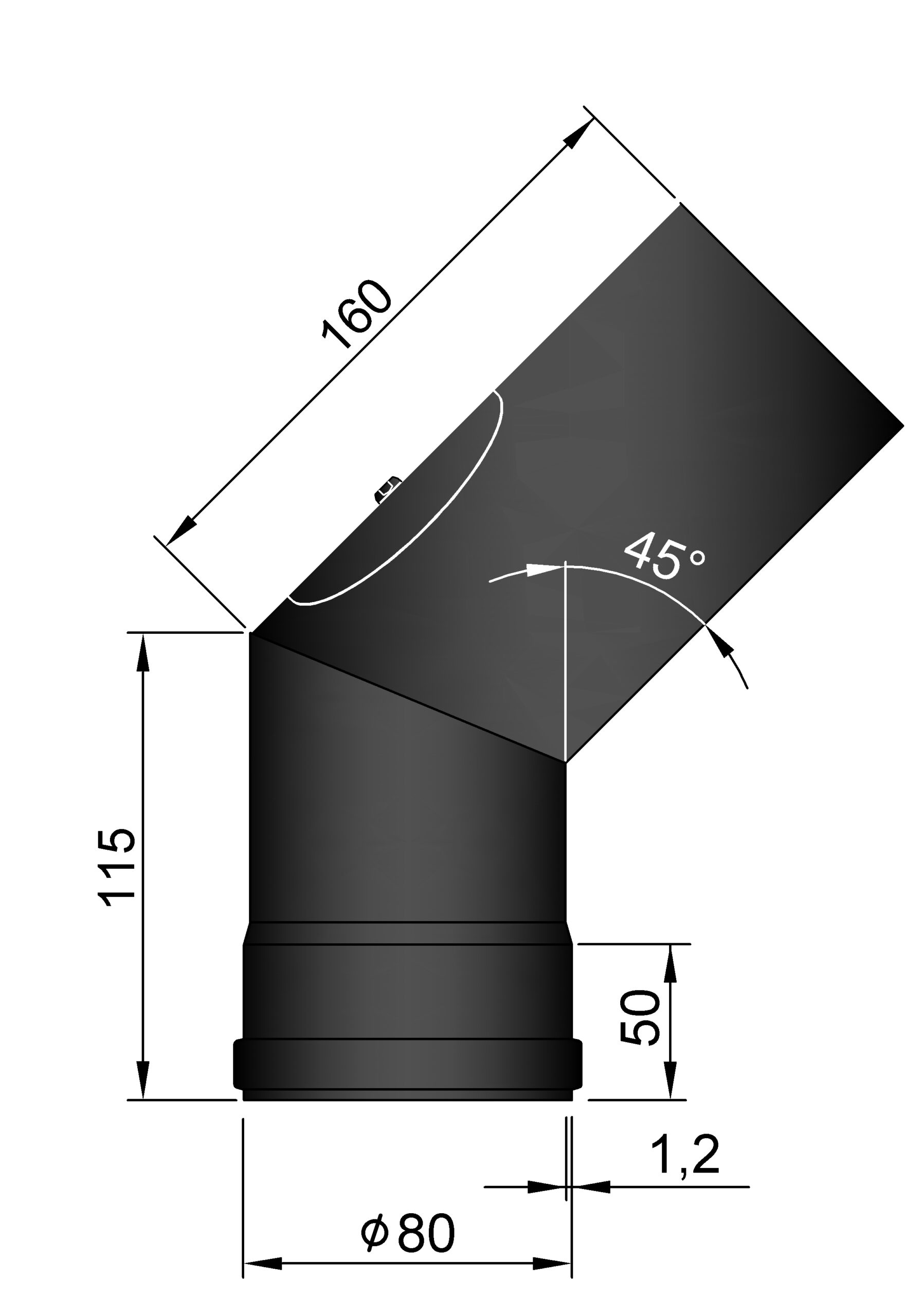 Røgrør til Pilleovn eller andet i Sort ø.80mm med silikonepakning