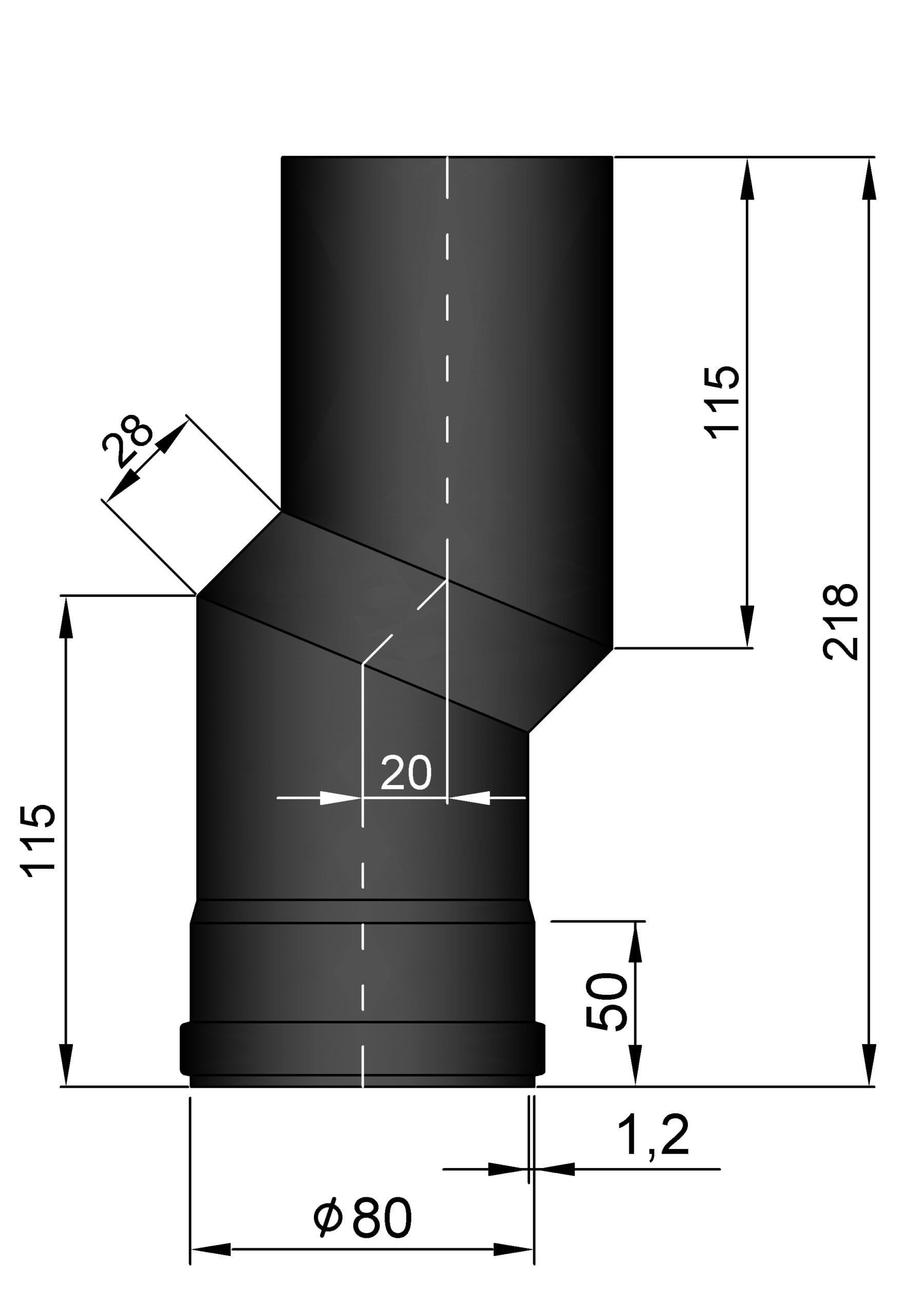 Røgrørs forskyder til Pilleovn eller andet i Sort 20mm ø.80mm med silikonepakning