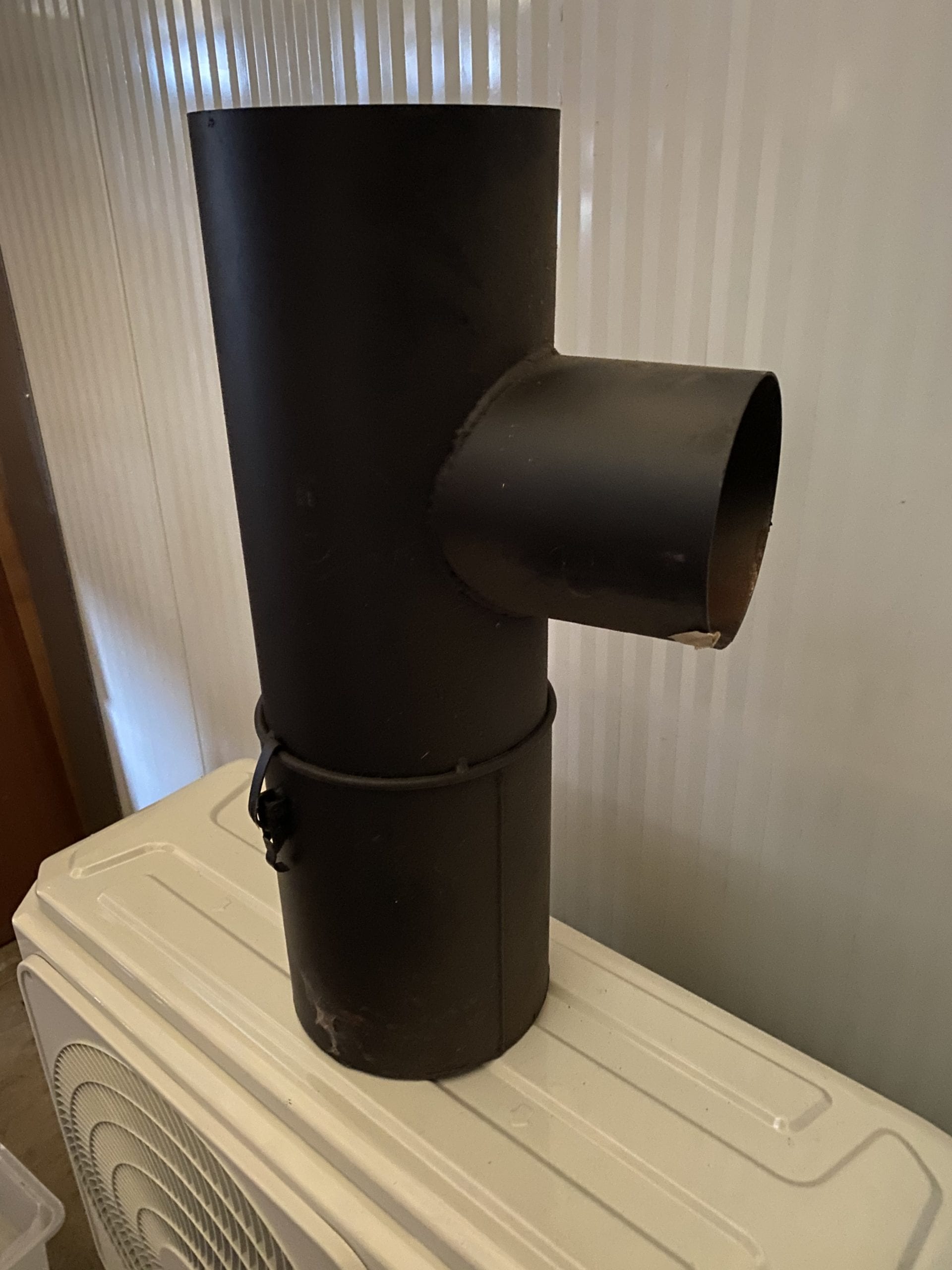 Tee Røgrør med sodpotte til varmluft fyr og andet 180mm med 140mm tilgang