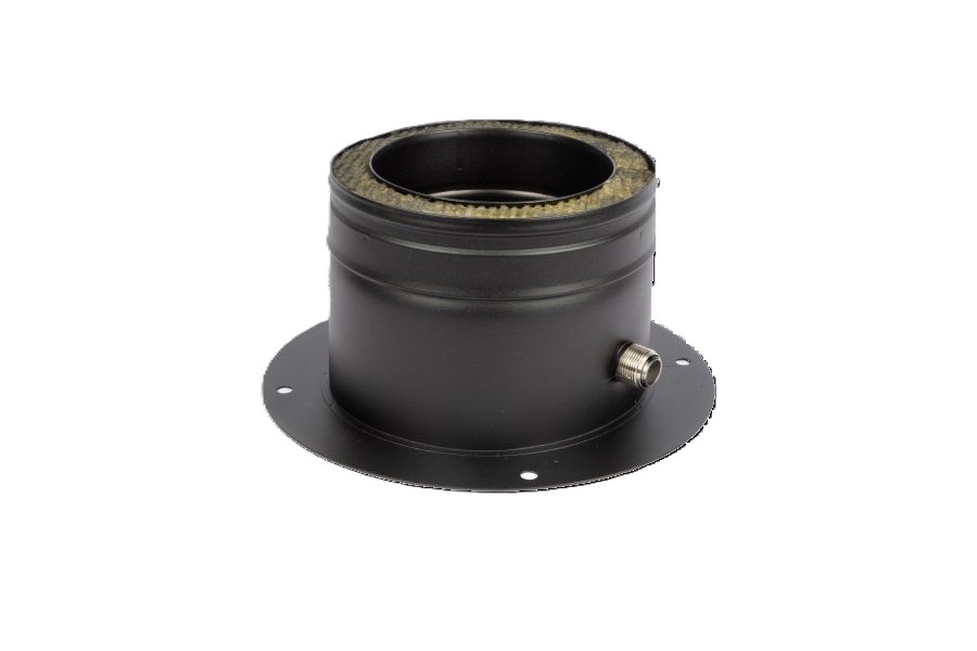 Stål skorsten 6″ ø150mm Start bund isoleret med dræn i sort rustfri til yder rør 210mm