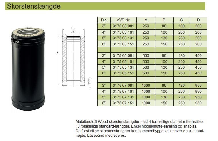 Vi fører alle størrelser fra Metalbestos til hurtig levering.